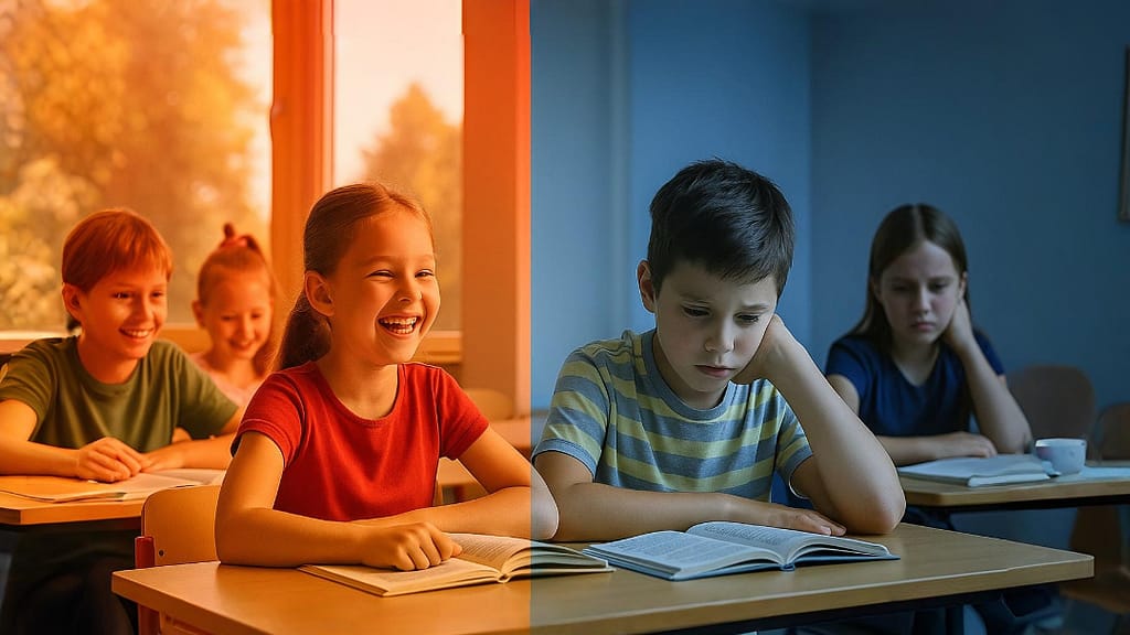 Infrarot fördert milde Tiefenwärme und öffnet Gefässe. Ohne diese Reize bleibt der Körper in permanenter Vasokonstriktion – kalte Hände, kalte Füsse, nervöse Unruhe. Büros und Klassenzimmer werden so zu „kalten Räumen bei 22 °C“ – normgerecht hell, aber physiologisch frostig.