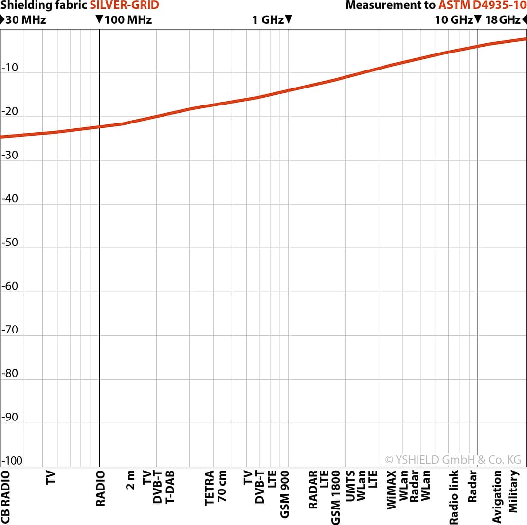 SILVER-GRID ist ein Baumwollstoff mit Silberfaden zur NF Abschirmung. Der perfekte Stoff für erdbare Produkte, sogenanntes „Earthing“. Für Bettwäsche, Bettlaken, Matratzenbezüge, Decken, Stuhlunterlagen, usw.. Mit 13 dB nur eingeschränkt zur HF-Abschirmung geeignet. Im Vergleich zu einem Wettbewerberprodukt hat SILVER-GRID ein engmaschigeres Silbernetz, mit einem geringeren Widerstand, für eine bessere Erdung.