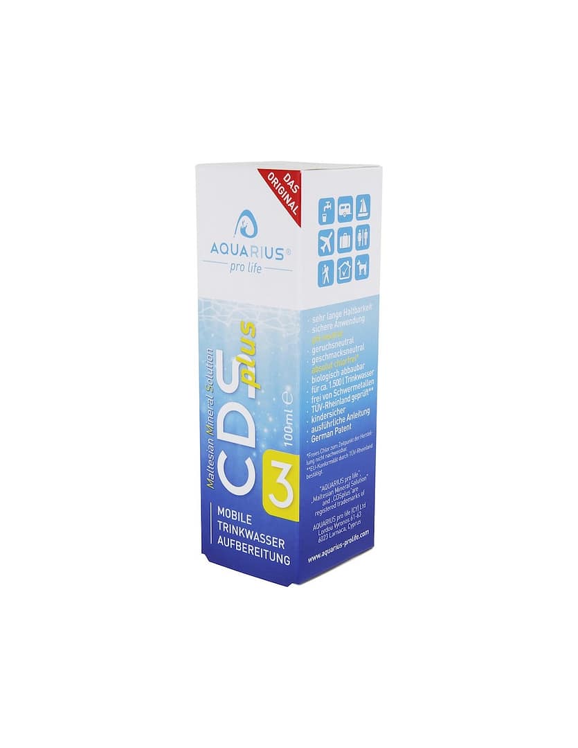 ACHTUNG: Es gibt einige sehr ähnlich klingende Produkte von anderen Marktteilnehmern, die aber nicht die gleichen Eigenschaften haben wie das Original: Unser CDSplus der Marke AQUARIUS pro life. Man benötigt für die gleiche Wassermenge deutlich mehr CDSplus als CLASSIC. In heißen Ländern mit beschränkter Kühlmöglichkeit ist ggfs. das MMS CLASSIC vorzuziehen.