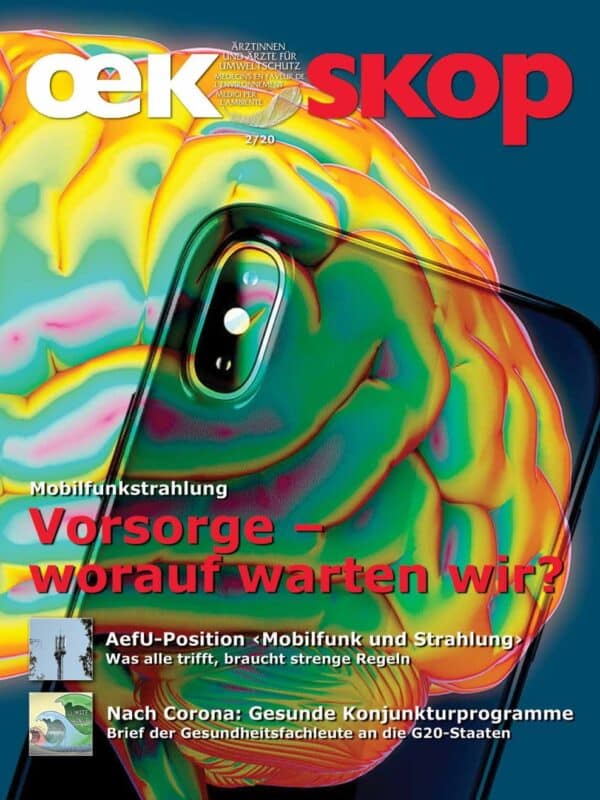 Die aktuelle Ausgabe 2020-2 des Magazins „Oekoskop“ der *Ärztinnen und Ärzte für Umweltschutz“ widmet sich mit mehreren Beiträgen dem Thema Mobilfunk.